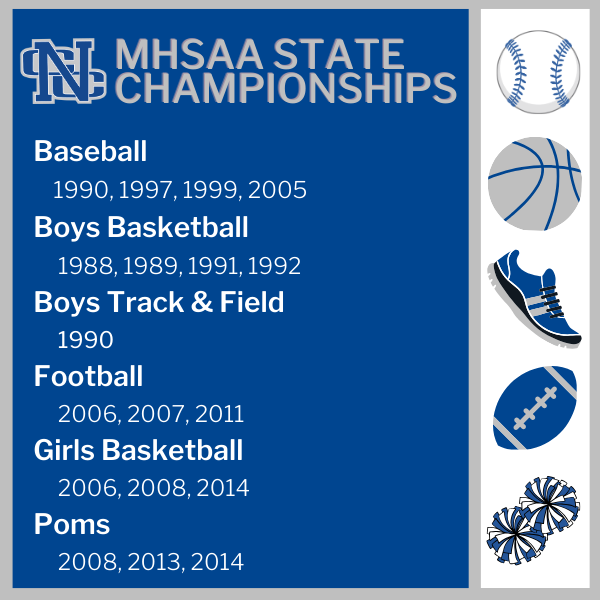 Nouvel Catholic Central provides an athletic program that develops our student-athletes through education and competition. Nouvel athletes have won 36 State Championship/runner up finishes and 79 MHSAA Regional Championships. Our program has proudly produced 4 MHSAA Scholar-Athlete Scholarship recipients, many finalists and numerous Academic All-State and MHSAA Good Sports winning teams.